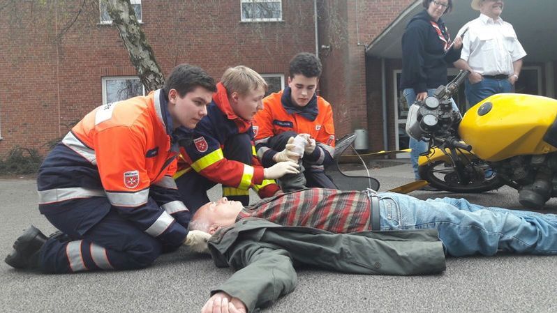 Vonberg empfiehlt, den Helm am besten zu zweit abzunehmen. „Zuerst öffnet man das Visier, den Kopf hält man leicht fest, damit er nicht zur Seite knickt.“ Der Helm wird dann unter Zug gerade nach oben abgezogen. Wenn der Helm einmal runter ist, könne man den Betroffenen sachgerecht lagern. „Wenn der Kradfahrer noch atmet, wird er in die Seitenlage gelegt. Falls keine Atmung mehr vorhanden ist, wird die Wiederbelebung durchgeführt.“ Ersthelfer sollen sich im Falle des Falles an den Helm `ran trauen und müssten keine Angst haben, etwas falsch zu machen. „Man kann nur etwas falsch machen, wenn man nichts macht“, ist sich Vonberg sicher. Die Malteser raten, alle zwei Jahre Erste Hilfe-Kenntnisse aufzufrischen. „Vielleicht ist der Start in den Frühling ja eine gute Gelegenheit dazu?“
