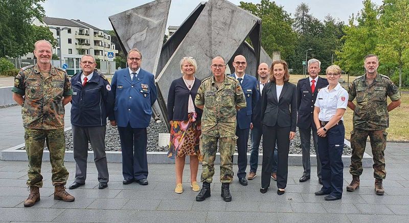 Düsseldorf/NRW. Der Kommandeur des Landeskommandos NRW, Brigadegeneral Dieter Meyerhoff, hat die „die Blaulicht-Familie“ zum Frühstück nach Düsseldorf eingeladen. Zum ersten Mal trafen sich Vertreter von THW, Hilfsorganisationen, Innenministerium und Bundeswehr in diesem Rahmen zum besseren Kennenlernen und Austausch. General Meyerhoff unterstrich in seiner Begrüßung, wie wichtig es sei, in der Krise und im Einsatz die Gesichter der handelnden Personen zu kennen. „Wir finden, das war ein gelungener Auftakt und freuen uns auf die künftigen Begegnungen“, so Katastrophenschutz-Referentin Ina Löllgen. Dieser Austausch soll künftig zweimal im Jahr stattfinden. „Schön, dass wir bei dieser Gelegenheit auch gleich den neuen Landesbeauftragten des THW, Nicolas Hefner, kennenlernen konnten“, sagte Regional- und Landesgeschäftsführerin Sophie von Preysing. Die Bundeswehr in NRW war während der Pandemie und nach der Flut ein leistungsfähiger Partner des Landes NRW im Rahmen der zivil-militärischen Zusammenarbeit.