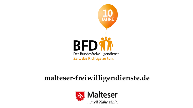 Fast 7.000 Frauen und Männer haben die sozialen Dienste der Malteser in den letzten 10 Jahren im Rahmen eines Bundesfreiwilligendienstes (BFD) mit ihrem Engagement unterstützt. "Wir Malteser waren von Anfang an dabei und es ist toll zu sehen, was aus dieser kleinen Pflanze bis heute geworden ist", so Sabine Ulonska, Abteilungsleiterin der Malteser Freiwilligendienste. Neben ihr gratulieren auch pädagogische Fachkräfte und Freiwillige der Malteser zu diesem besonderen Jubiläum und berichten von ihrer Arbeit und ihrem täglichen Einsatz im Rahmen des Bundesfreiwilligendienstes.