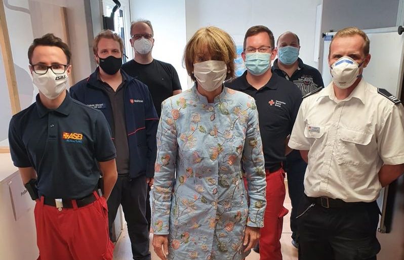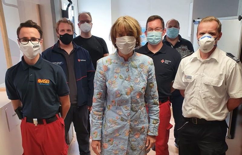 Bereits am Vortrag schaute sich Kölns Oberbürgermeisterin Henriette Reker die Teststation an und informierte sich bei den Einsatzkräften über den Ablauf.