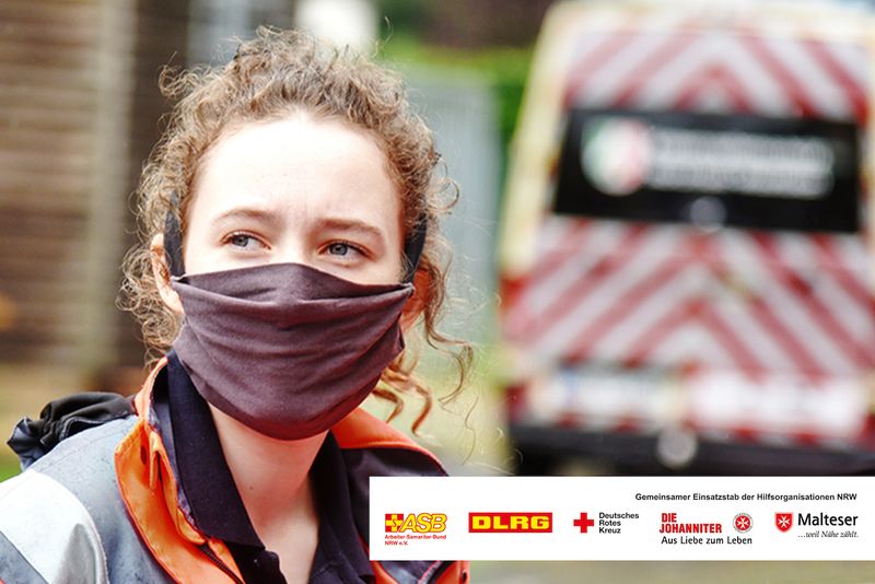 Seit Ausbruch der Pandemie kommt den Hilfsorganisationen eine besondere Aufgabe mit den teilweise sehr kurzfristigen Transporten der notwendigen Schutzausrüstung zu. Im Auftrag des Ministeriums für Arbeit, Gesundheit und Soziales des Landes Nordrhein-Westfalen transportieren ASB, Malteser, Johanniter und DRK palettenweise unterschiedliche Schutzausrüstung über die fünf Bezirksregierungen in die Kreise und kreisfreien Städte. Bis zum 17. Juli 2020 wurden alleine rund 92 Mio. Atemschutzmasken, rund 2 Mio. Schutzkittel und -anzüge, rund 3,5 Mio. Schutzbrillen und -visiere, 15 Mio. Handschuhe, rund 1,3 Millionen Test-Kits und rund 222.000 Liter Desinfektionsmittel durch ehrenamtliche Kräfte der Hilfsorganisationen verteilt.