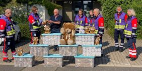 Heute war für den Fachberater ein besonderer Tag, denn mit Guido Boes steht ihm nun auch ein Führungsassistent zur Verfügung. Rechtzeitig, um ein neues PSNV B-Team der Malteser aus Norderstedt und Ravensburg zu begrüßen. Zur Einweisung kamen auch Dr. Sonja Zingsheim und Jörg Zeche vom Gesundheitsamt des Kreises Euskirchen. Mit im Gepäck hatten die beiden 200 Trost-Teddys einer Stiftung, die die mobilen PSNV-Teams in den kommenden Tagen mit im Gepäck haben werden, wenn sie zu den Betroffenen fahren.