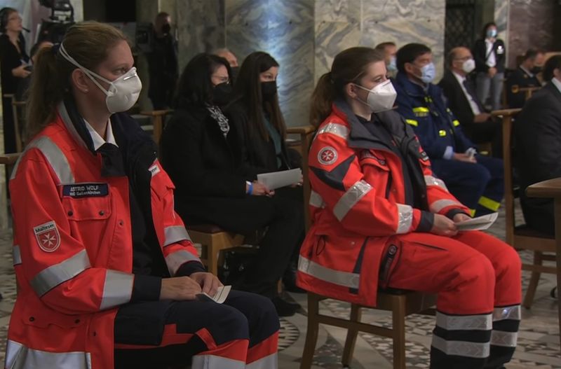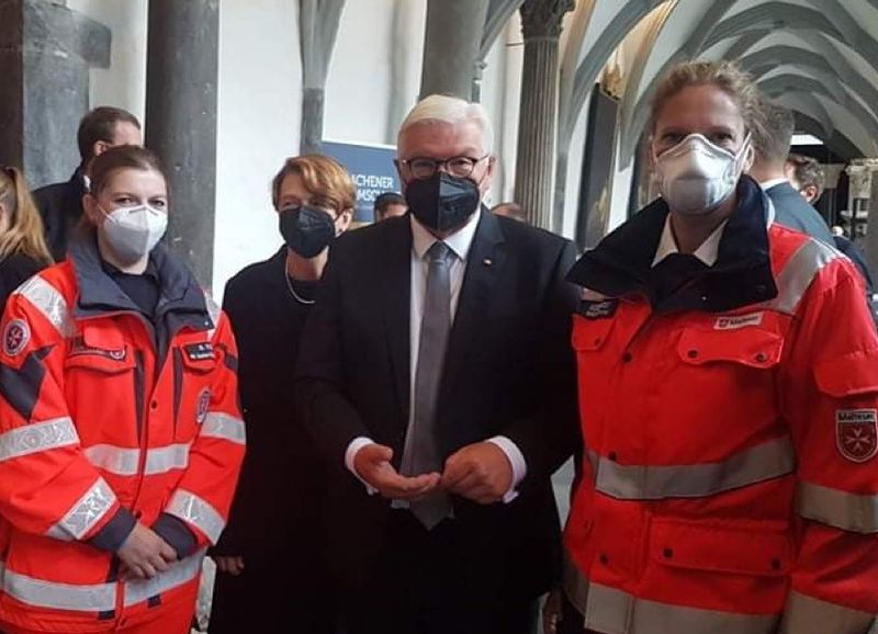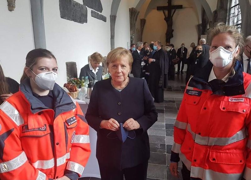 Nach dem Gedenkgottesdienst nahmen sich auf Initiative von Astrid Wolf neben Bundespräsident Frank-Walter Steinmeier u. a. auch Kanzlerin Angela Merkel, Ministerpräsident Armin Laschet kurz Zeit für ein Gespräch mit den Vertreterinnen und Vertretern der Hilfsorganisationen.