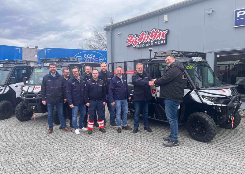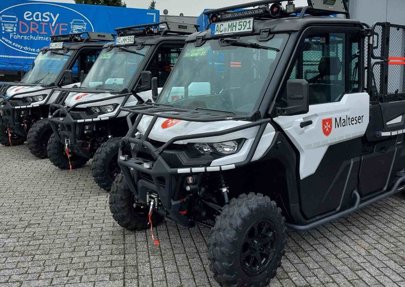 Simmerath. Große Freude bei den Aachener Maltesern. Ab sofort erfahren die Katastrophenschutz-Fähigkeiten innerhalb der Diözese einen richtiggehenden Booster. Grund: Bei der Ausbauer-Firma BigAirMax fand am Freitag die Übergabe von drei sogenannten All-Terrain-Vehicles, kurz ATV, statt. Hierunter versteht man geländegängige Kraftfahrzeuge mit vier Rädern oder Gleisketten und Allradabtrieb, die innerhalb schwer zugänglicher Gebiete eingesetzt werden können.