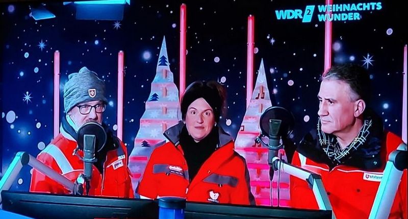 Der Malteser Herzensbus ist ein rein spendenfinanzierter Dienst und lebt von der ehrenamtlichen Arbeit seiner Helferinnen und Helfer. "Der Hunger in der Welt betrifft uns alle," sagen Thomas Ohm, Frank-Jörg Paul und Rebecca Unruh und so spendete das Malteser-Team großartige 200 Euro, die sie unter allen Helfenden gesammelt hatten, für das WDR2-Weihnachtswunder.