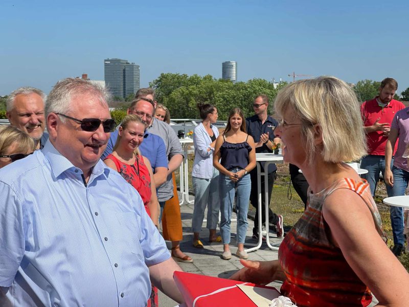 Für die Mitarbeiter der Regionalgeschäftsstelle sprach die dienstälteste Mitarbeiterin der Regionalgeschäftsstelle, Sonja Rothkamp. Gerührt sagte sie: „Lieber Michael, wir waren ein tolles Team! Wir haben sehr gern mit Dir zusammengearbeitet.“ Die gemeinsamen Kaffeepausen frühmorgens in Nacks Büro seien wie Kurzurlaube gewesen. Rothkamp: „Danke für Deine warmherzige Art und vor allem für Deine Freundschaft und für Dein Vertrauen. Wir danken Dir für eine unvergessliche Zeit.“