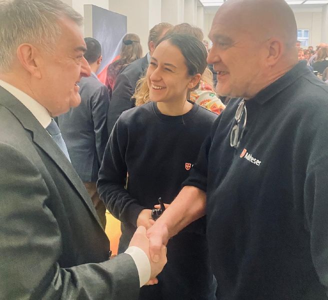 Für die Malteser nahmen neben Dr. Elmar Pankau auch Regional- und Landesgeschäftsführerin Dr. Sophie von Preysing und Frank Schira an diesem Empfang teil. Hinter den Kulissen, aber gut sichtbar, sorgten die Düsseldorfer Malteser für den Sanitätsdienst. Innenminister Herbert Reul zog Chiara Galdi und Norman Dittrich von den Maltesern kurzerhand für einen netten Plausch ab.