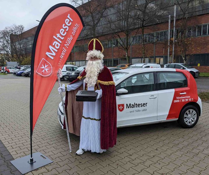 Beim Menüservice der Malteser in Oberhausen vereteilte der Nikolaus die Mahlzeiten an seinem Namenstag.