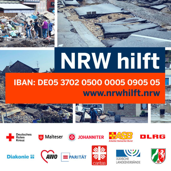Münster. Auf Initiative von Ministerpräsident Armin Laschet wurde am 19. Juli die Spendenaktion „NRW hilft“ ins Leben gerufen. Seitdem sammeln regional und bundesweit tätige Wohlfahrtsverbände und Hilfsorganisationen gemeinsam mit der Landesregierung Nordrhein-Westfalen Geld für die Menschen in den betroffenen Regionen in NRW.