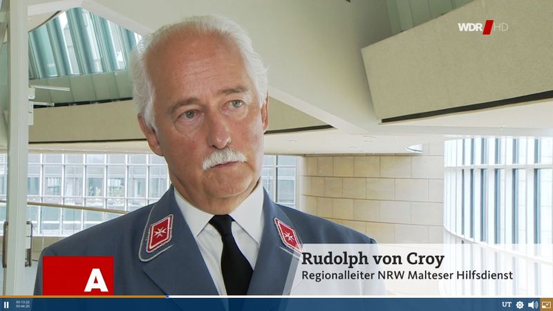 Rudolph Herzog von Croÿ sagte dem WDR anschließend: "Die Helfer kommen jetzt aus dem Einsatz. Sie sind teilweise schwer traumatisiert, auch schwer belastet durch diesen Einsatz. Sicherlich ist es wichtig für unsere Helfer, dass sie auch merken, dass sie für ihren Einsatz auch Anerkennung bekommen von der öffentlichen Seite." Der Einsatz sei für die Malteser noch nicht vorbei. Der Malteser Regionalleiter "Es kommt noch die große Aufgabe auf uns zu, einmal auch die Aufräumarbeiten zu begleiten, und zweitens geht es ja dann anschließend auch um die Verteilung von Spendenmitteln. Und Sie wisssen, es ist auch immer schwierig, dass man den richtigen Leuten zur richtigen Zeit hilft."