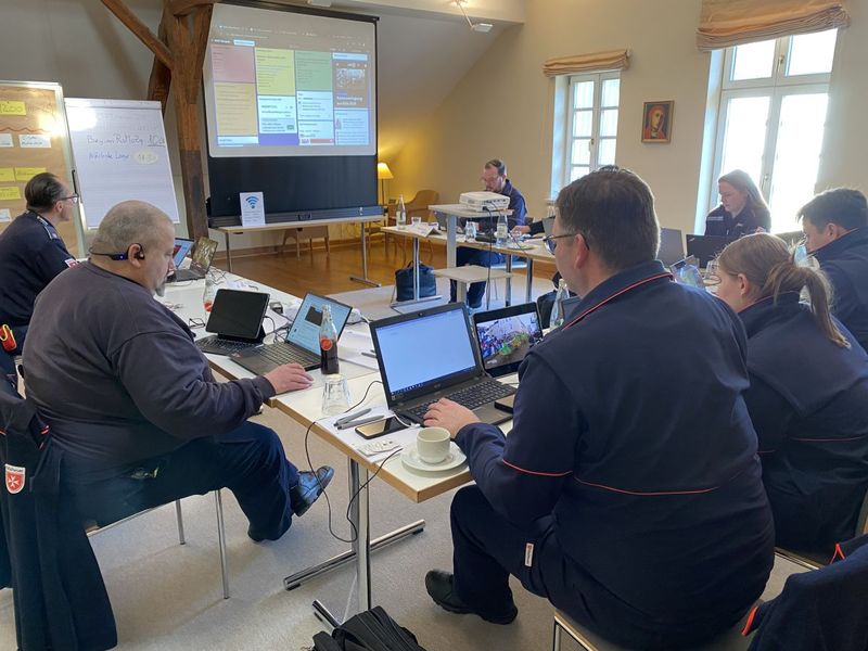 Auch über eine Alarmierung des Teams sowie über eine sinnvolle Aufteilung innerhalb der Einsatzlage hat sich die Mannschaft Gedanken gemacht. „Wichtig ist, dass nicht alle das Gleiche machen, sondern, dass wir das, was notwendig ist, verteilen, um einen Stab dann zur richtigen Zeit mit den richtigen Informationen versorgen zu können. Dazu wurde auch ermittelt, was das Team grundsätzlich alles für diese Arbeit benötigt. So sei über die übersichtliche Einrichtung von Dashboards ebenso gesprochen worden, wie über die Frage, wie im Einsatz kommuniziert werden solle und was konkret, von E-Mail-Anbindung bis Telefonverbindung, notwendig sei.